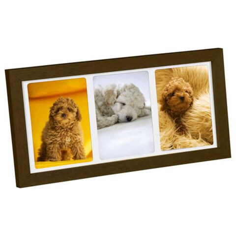 部屋になじみやすい色のフレームを使った、写真をたくさん飾れる木製の多面額です。