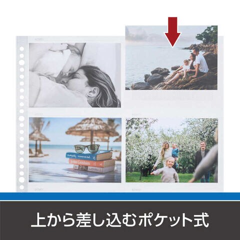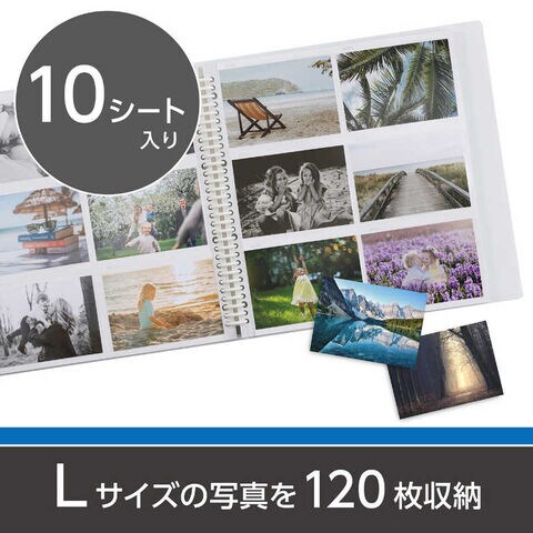 Lサイズ用台紙10シート入り(1シートあたり、両面合わせて12枚の写真を収納できます)。