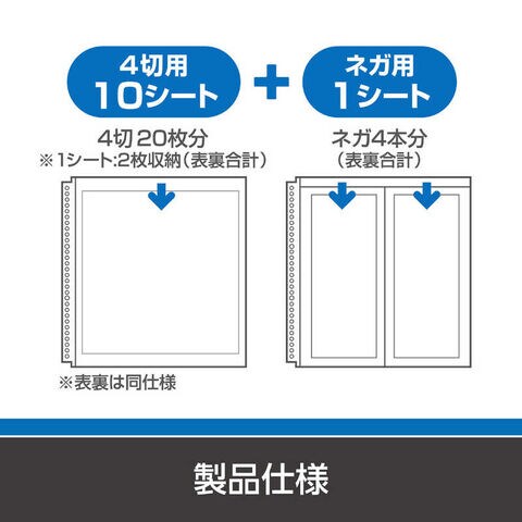 仕様3:シート数 : 4切サイズ用10シート、ネガフィルム用1シート(4切サイズ用1シートあたり両面合わせて2枚、ネガフィルム用4本収納可能)