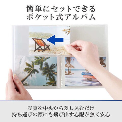 ポケット構造になっているので、表紙の写真をお気に入りの1 枚に入れ替えるだけで簡単にオリジナルのアルバムがつくれます。