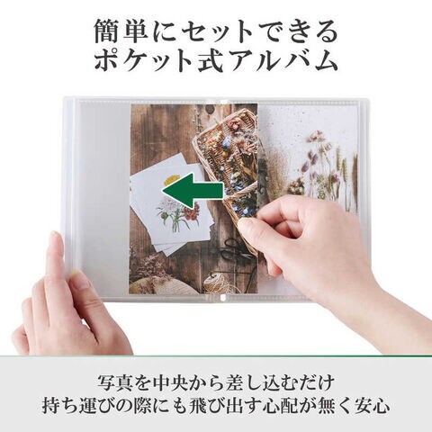 ポケット構造になっているので、表紙の写真をお気に入りの1 枚に入れ替えるだけで簡単にオリジナルのアルバムがつくれます。