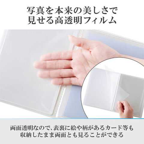 収納ポケットは、写真本来の色をそのまま美しく見せる透明度の高いフィルムを採用しています。