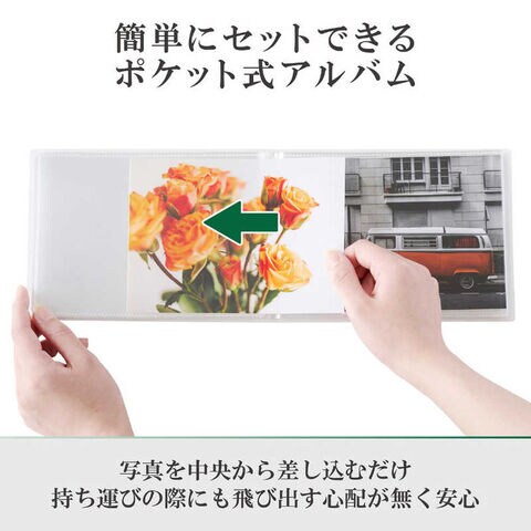 収納ポケットは、写真本来の色をそのまま美しく見せる透明度の高いフィルムを採用しています。