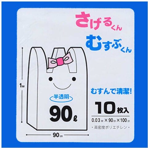 プラテック ゴミ袋 手さげ 90L 10枚入 半透明