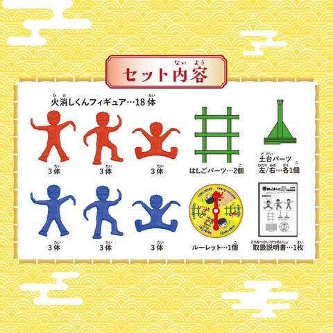 ●火消しくんフィギュア(3種)18体付き。