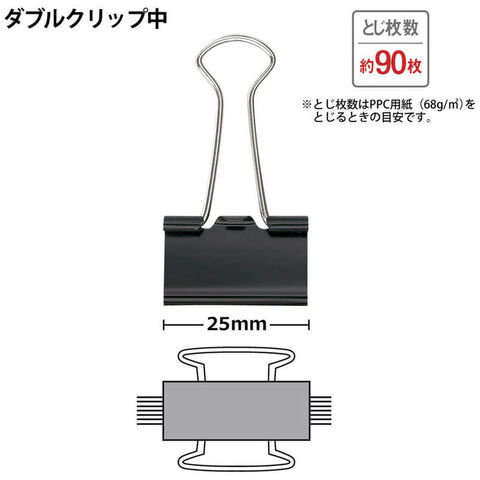 ・とじ枚数約60枚・クリップ幅25mm・10個入りの小箱が10箱 計100個入り