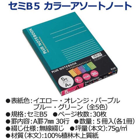プラス ノートブック セミB5 5冊パック カラーアソート NO-003AS-5CP
