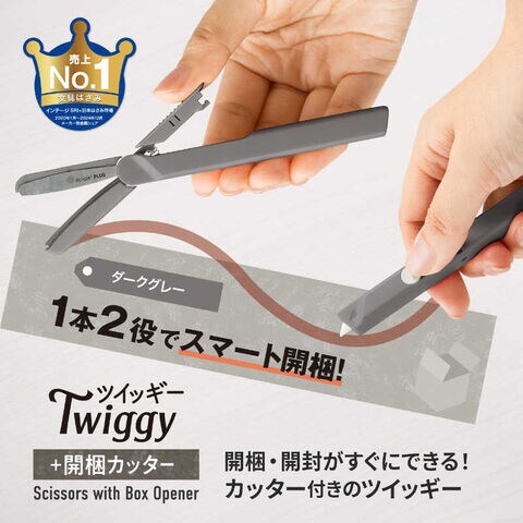 プラス ハサミ フィットカットカーブ ツイッギー+開梱カッター ダークグレー SC-150P