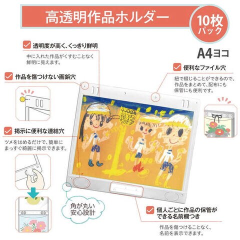 ・お子様の大切な作品をキズや汚れから守りながら、掲示や保管できます。