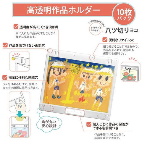・お子様の大切な作品をキズや汚れから守りながら、掲示や保管できます。