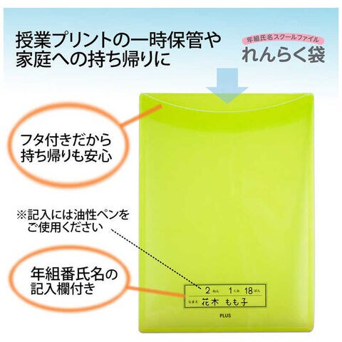 プラス 年組氏名スクールれんらく袋 タテ入れ A4 GR FL-192SF