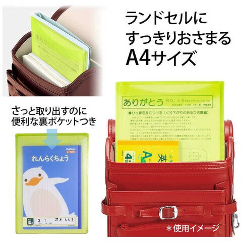 ・ランドセルにすっきり収まる小さめのれんらく袋・学校からの配布プリントだけでなく、連絡帳もいれることができます。