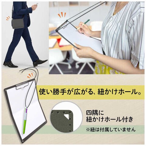 折りたたむとA5サイズになる、持ち運びしやすいクリップボード・折り目がフラット:開くと折り目がフラットなので、書き心地が滑らか。