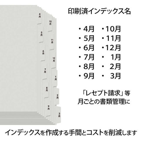 「レセプト請求」等月ごとの請求関係の書類管理に便利なインデックスシート。