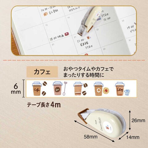 日記やスケジュール管理に便利なかわいさと実用性を兼ね備えたテープデザイン。