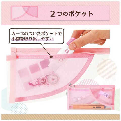 内側上部に、カーブのついた大小2つのポケットがあるので小物を分類して収納でき、取り出しもスムーズ。