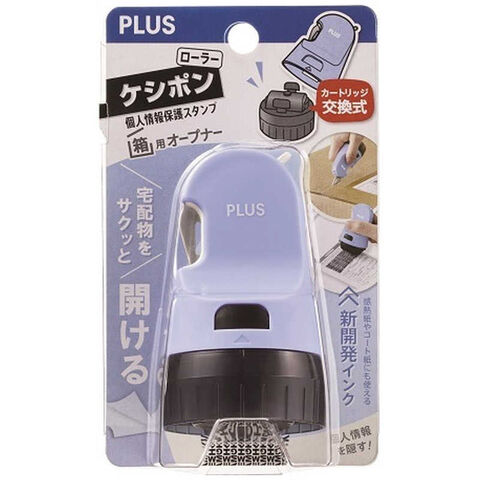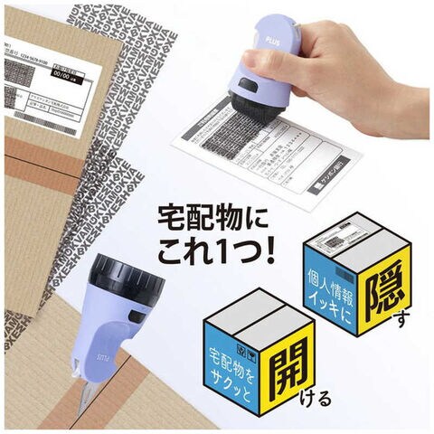 段ボールなどの宅配物の「開梱」と「個人情報」を隠す2つの動作をスムーズに行えるローラーケシポンのインク交換式タイプ。