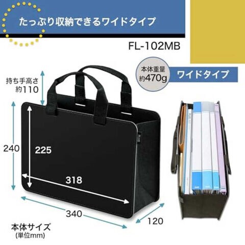 横340mm×高さ240mmとコンパクトながら、13.3インチノートPCやA4ファイルなどがきちんと収まるサイズ。