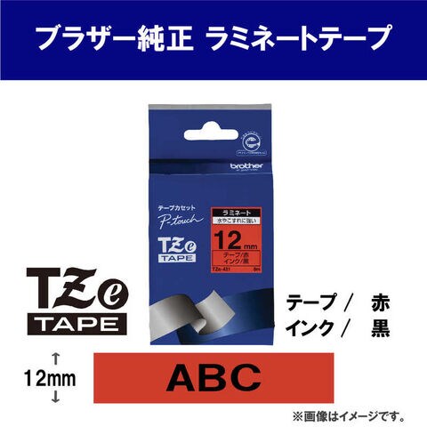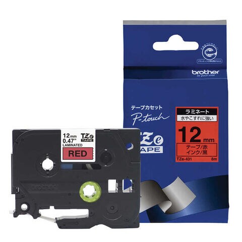 ブラザー brother 【純正】ピータッチ ラミネートテープ 幅12mm (黒文字/赤) [TZE431] TZe-431