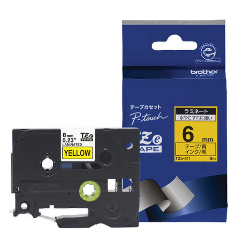 ブラザー brother 【純正】ピータッチ ラミネートテープ 幅6mm (黒文字/黄) [TZE611] TZe-611