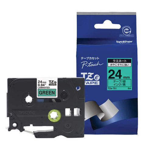 ブラザー brother 【純正】ピータッチ ラミネートテープ 幅24mm (黒文字/緑) [TZE751] TZe-751