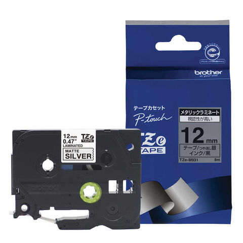 ブラザー brother 【純正】ピータッチ ラミネートテープ 幅12mm (黒文字/銀/つや消し) [TZEM931] TZe-M931