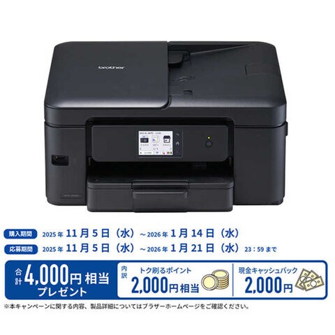 プリント、コピー、スキャン、ファクス、USB接続、スマホ接続、タッチパネル液晶、ADF(自動原稿送り装置)、自動両面プリント、ダイレクトプリント、前面給紙トレイ、4色独立インク。