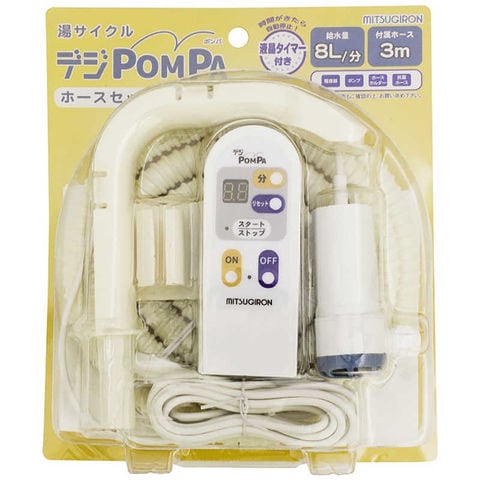 お風呂の残り湯をお洗濯に再利用。時間が来たら自動停止。液晶タイマー付きお風呂の残り湯をお洗濯に再利用。デジタル表示で見やすく、操作が簡単。3mホースセットセットで買ってすぐにご使用頂けます。