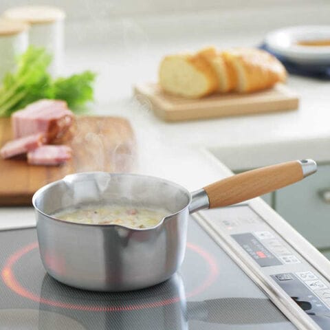 自慢の気持ちよく注げる両口はそのままに、スープやソース作り、茹で物など万能に使えます。