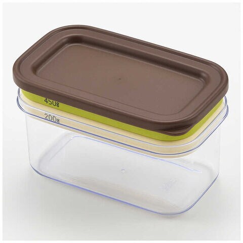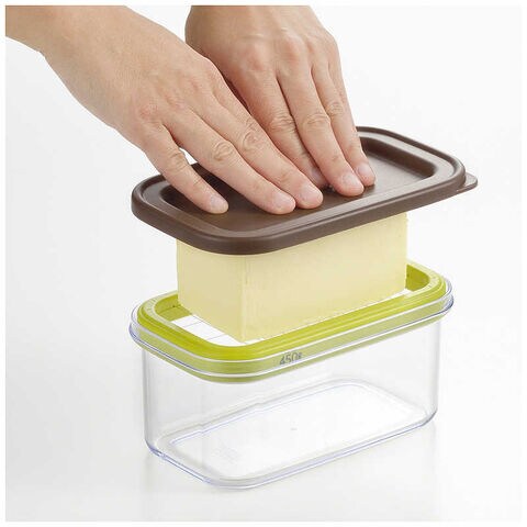 ギュッとひと押し、大きな業務用ポンドバター450gも約10gのうす切りに。(200gのバターは約5gのうす切りに)ピタッと閉まる密閉蓋で、冷蔵庫にそのまま保存できます。