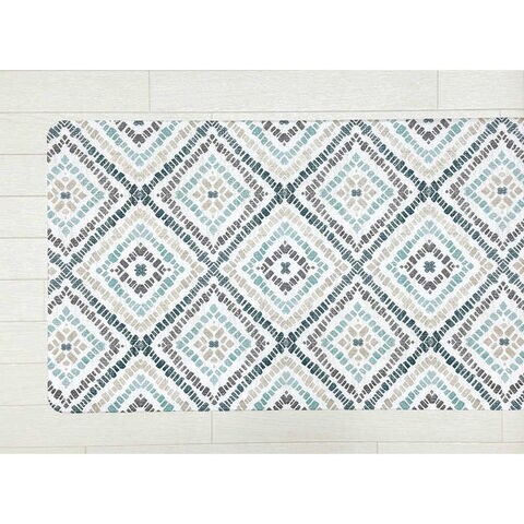 プリントの一部が程よく透けているデザインなので床色が優しく浮かび上がりマットが自然と床になじみます。ご自宅の床材や床色によってマットの表情が変わります。
