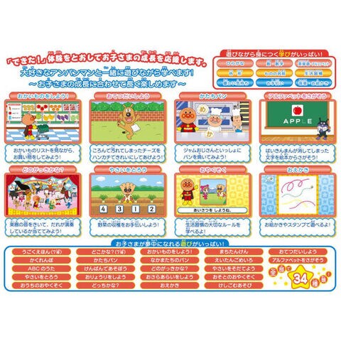 アンパンマンたちが画面で動いたりおしゃべりしたり、楽しい仕掛けがいっぱい盛り込まれています。
