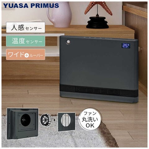ユアサ 分解して洗えるワイドタイプのセラミックファンヒーター 1200W 人感センサー付き グレー YA-PS1246SGM-H