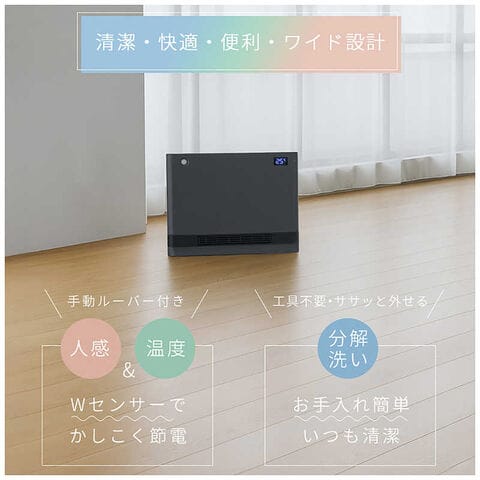 人感・温度のWセンサー搭載 ファンまで分解して洗えるワイドセラミックヒーター