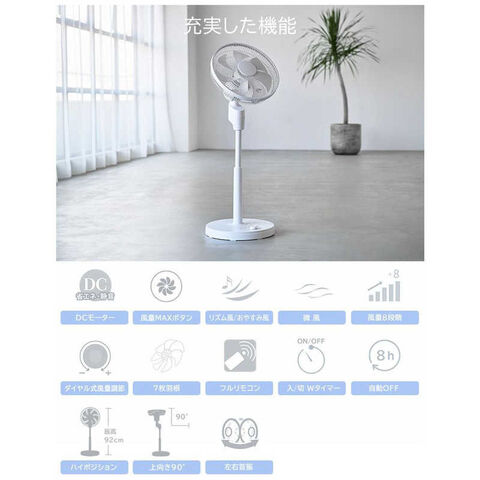 ユアサ 扇風機 DCモーター搭載 (省エネタイプ) 自動首振り機能あり 30cm リモコン付き ホワイト YKT-D3423GFR-W