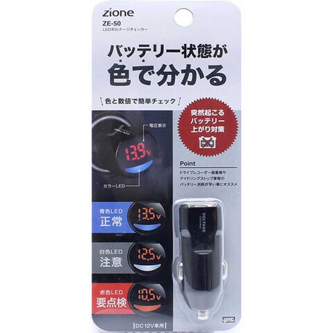 アクセサリー電源ソケットに挿し込むだけで簡単に車両の電圧を測定し、表示する