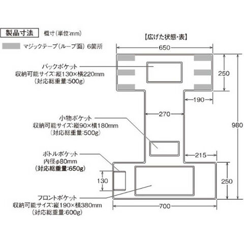 ●サイドポケット:ペットボトルやマイボトル(Φ80)