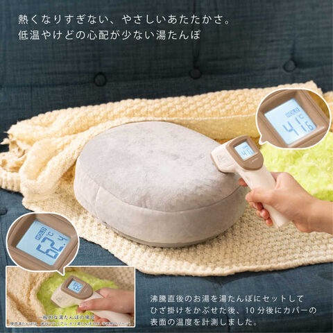 湯たんぽ本体と湯たんぽカバーの間に空間ができる構造なので、湯たんぽカバーの表面の温度が高くなりすぎないので、低温やけどを発症する心配がすくなくなります。