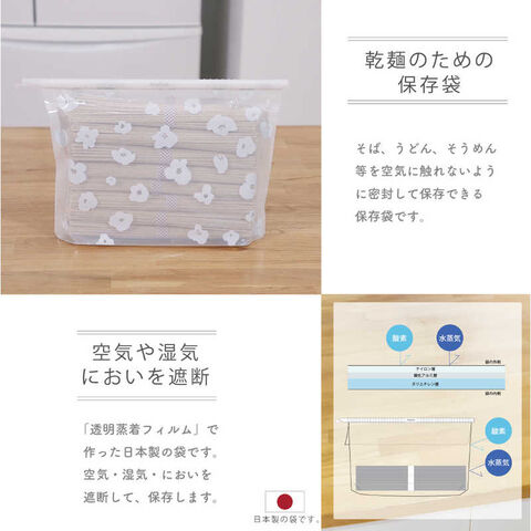 そば、うどん、そうめん等をおいしい状態に保つ保存袋。
