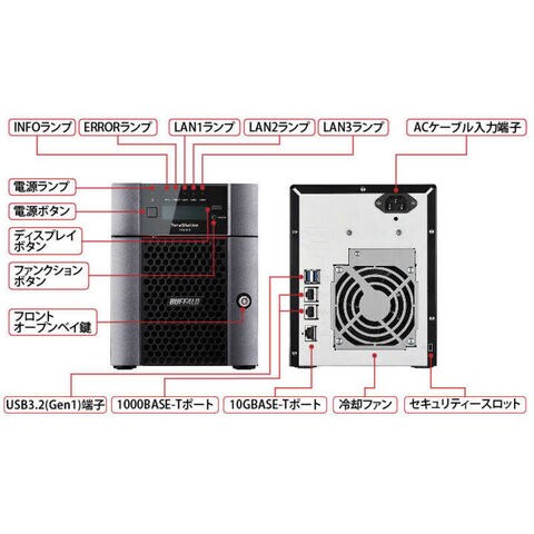 LAN対応:[インターフェース(LAN端子)]LAN端子(10GBASE-T):背面×1LAN端子(1000BASE-T):背面×2[インターフェース(USB端子)]USB 3.2(Gen 1)端子:背面×2