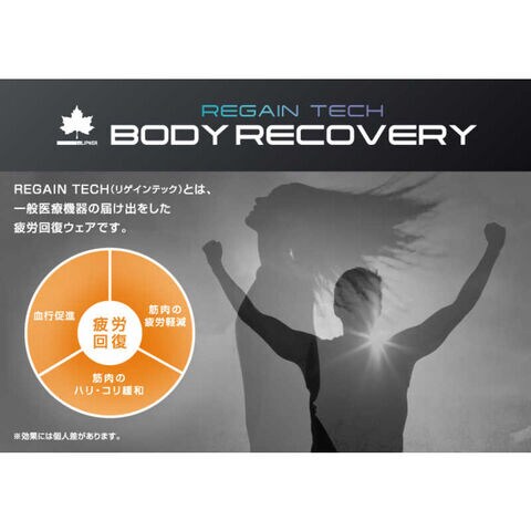 自らの体温による遠赤外線を輻射させる特殊繊維「リゲインテック」を使用した疲労回復ウェア。