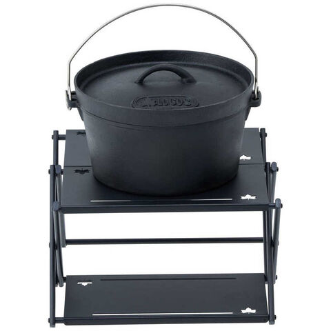 スチール製の耐熱天板なので、熱々のダッチオーブンやスキレットも直置きができ便利。
