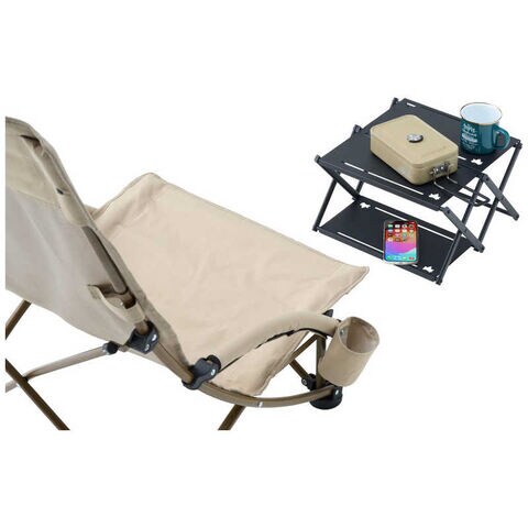 スペースを広く使えるサイドテーブルは、あぐらチェアなどのローチェアとも相性抜群。