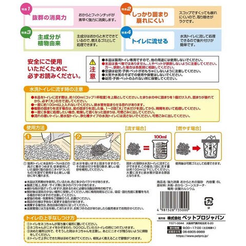 ペットプロジャパン デオフリー 強力消臭 おからと木の猫砂 6L