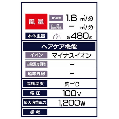 BLDCモーター搭載(次世代ドライヤー):BLDCモーター非搭載