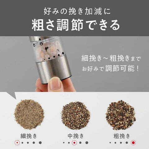 USB充電式・内容物が見えるキャビン・粗さ調節可能・マグネット付き土台付・錆びない丈夫なセラミック刃・片手で操作手が汚れない