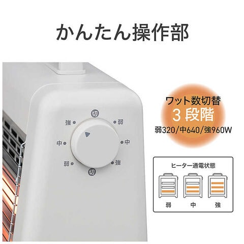 ●コンパクトでも電力切替3段階できる 320W/640W/960Wの3段階切替で、320Wで使えば電気代も抑えられる