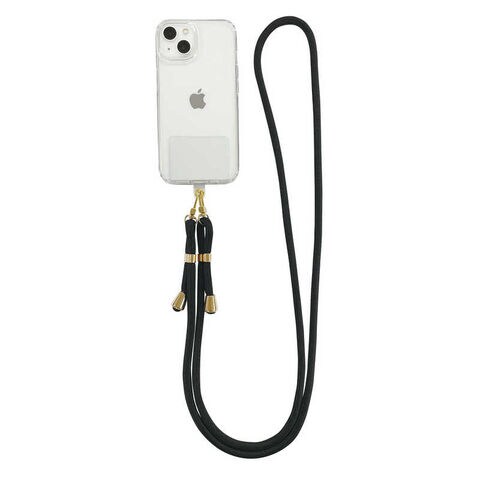 スマホケースに挟むだけで落下防止、紛失防止にも役立つスマホショルダーストラップ。
