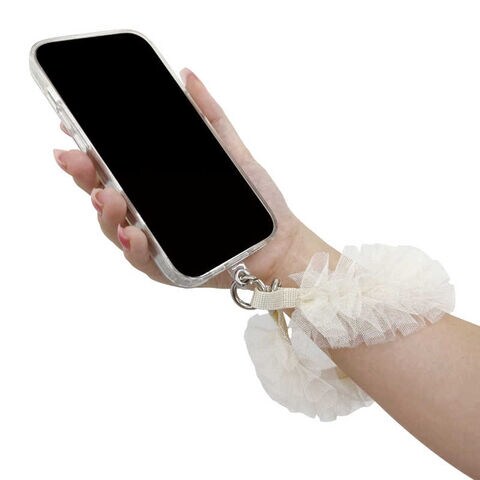 サンクレスト チュールフリルハンドストラップ ホワイト iSB-HS10