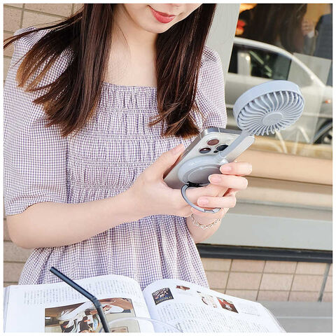 エレス マグネットでスマホに貼付け可能な新しい形のハンズフリーファン グレー IFMG25-GY